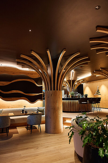 Natural materials, a verdant ceiling, plenty of wood, hand-picked fabrics and a clear, serene aesthetic shape the atmosphere of our newly designed restaurant. Large windows frame views of meadows and forests, while inside, soothing tones and gentle shapes wrap the space in a feeling of shelter. Here we serve our nature-inspired cuisine in all its richness – from a fragrant breakfast with homemade delights to creative lunch dishes and lovingly composed dinners rooted in the seasons.