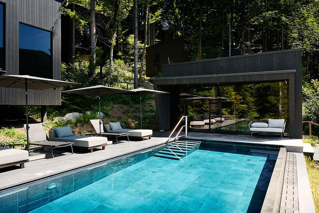 The newly added infinity pool, harmoniously integrated into the surrounding forest, offers guests a unique sense of freedom. Floating in the heated water while gazing out across the treetops and alpine landscapes creates a deep feeling of unity with nature – a quiet luxury of the most serene kind.
